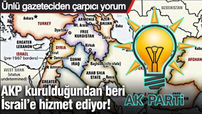 Bölgenin en güçlü ülkesi Türkiye için ilk etapta hedeflenen nedir derseniz Güneydoğu'nun koparılması ve kurulacak yeni Müslüman İsrail'e pardon Kürdistan devletine katılmasıdır. Bu aktardığım masal ya da tevatür değil artık her yerde dillendirilen olgudur. Irak, Libya, Gazze, Suriye ve Lübnan'da olanlarla halen devam eden İran saldırısı onun belgesi keza Amerika'nın yıllar yılı binlerce tır dolusu silahı Suriye sınırına ayıp PYD yani PKK ordusunu kurması da bu nedenledir. Bu şekilde Ortadoğu İsrail çıkarlarına göre dizayn edilecek ve yeni bir harita çizilecek. Yaşananlarla %100 kanıtlı Türk İslamcıları yani AKP bu büyük İsrail projesinin başından itibaren truva atıdır. AKP tıpkı Hamas misali kuruluşundan bugüne büyük resimde hep İsrail'e hizmet etti ve hala da ediyor. Hamas nasıl 2023 Ekiminde durduk yerde İsrail'e saldırıp 1200 sivili öldürerek Gazze'yi teslim edip Filistin davasını bitirdiyse AKP de ilk günden itibaren İsrail çıkarlarına hizmet ediyor. Onunla kol kola öyle olmasa Tayyip Erdoğan Irak'a yapılan harekatta İsrail ve Amerika ile el ele olmazdı. Kendinden önceki Başbakan Bülent Ecevit olmadı. Bütün bu kullanışlılığa rağmen Türkiye maalesef bölünmeden payını alacak. Epeydir bunun zemini inşa ediliyor. Ekonominin çökmesinden hukukun ve demokrasinin askıya alınmasına tek adam rejiminden sığınmacılara ve toplumu düşmanlaştırmaya kadar yaşananlar eşikteki kaos ve bölünmenin işaretleridir yapılacak birkaç provokasyonla kıvılcımlar saçılıp buhran içinde olan toplumun patlatılması amaçlanıyor. Tayyip Erdoğan'la Devlet Bahçeli güya toplumsal barış adına Abdullah Öcalan'la bile işbirliği yaparken Türkiye'nin ana muhalefetine ve %60'ına savaş açtı. Okuma yazması olanlar için bunun okuması iktidarın sadece koltuğu koruma adına DEM Parti oylarını almak için tiyatro yapmasıdır.