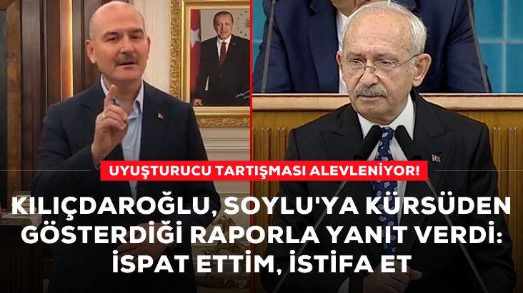 CHP lideri Kılıçdaroğlu'nun Türkiye'nin cari açığını uyuşturucu parasıyla kapattığına ve Türkiye'de bir uyuşturucu salgını olduğuna yönelik iddiası büyük tartışma yarattı. Bakan Soylu'nun "Yalanlarını yanına bırakmayacağız. İspat etmezsen namertsin" çıkışına bugün partisinin grup toplantısında kürsüden gösterdiği Emniyet Genel Müdürlüğü'nün hazırladığı "Türkiye Uyuşturucu Raporu" üzerinden yanıt veren Kılıçdaroğlu, "Bana dönüp diyorsun ki 'İspatla'. İşte ispatladım, onurun varsa istifa et" dedi.