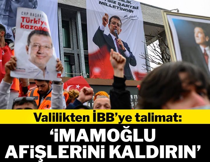 İstanbul Valiliği, İstanbul Büyükşehir Belediyesi'nden tutuklu bulunan Ekrem İmamoğlu ve belediye başkanlarının resim ve afişlerinin kaldırılmasını istedi. Konuya ilişkin resmi belgeyi CHP İstanbul İl Başkanı Özgür Çelik paylaştı.