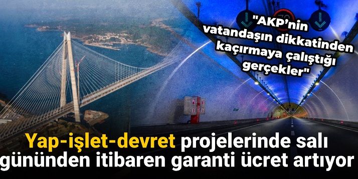 Ayrıca bu projelerde garanti edilen günlük araç geçiş sayıları tutturulamazsa, Hazine şirketlere tutturulamayan sayıdaki her araç için Osmangazi Köprüsü’nde 2.090 TL Çanakkale Köprüsü’nde için 870 TL Avrasya Tüneli’nde 266 TL YSS Köprüsü’nde 228 TL ödemek durumda!"