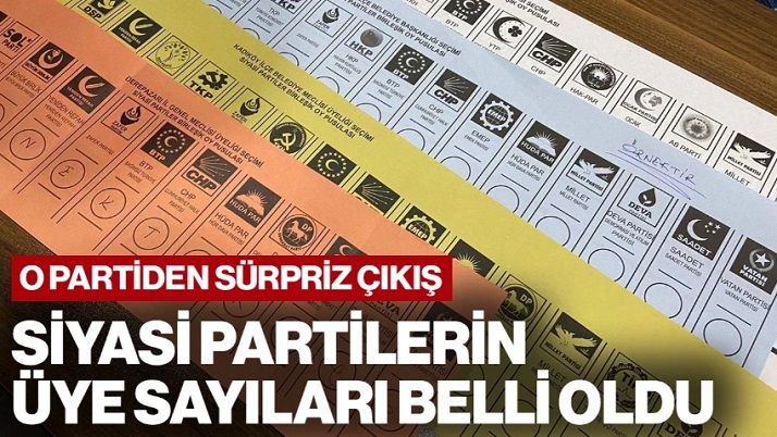 Verilere göre, ocak ayı itibarıyla TİP’in üye sayısı 35 bin 547, İYİ Parti 391 bin 731, Zafer Partisi 71 bin 84, Gelecek Partisi 60 bin 494, DEVA Partisi 15 bin 962 ve Demokrat Parti 309 bin 27 üyeye sahip.