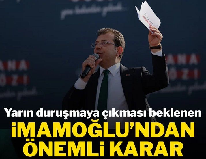 Ekrem İmamoğlu ve avukatlarının yarınki duruşmaya katılmama kararı aldığı öğrenildi.