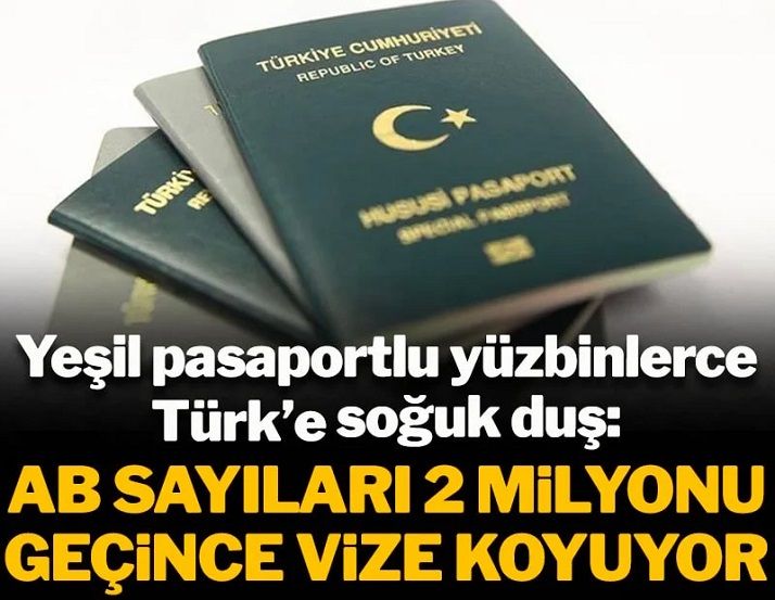 Avrupa Birliği (AB), Türkiye’de 2 milyonu aşkın kişiye yeşil pasaport verilmesi dolayısıyla Yeşil Pasaport sahiplerine de vize zorunluluğu getirmeyi planlıyor.