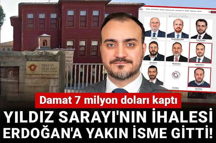 Cumhurbaşkanlığı Milli Saraylar Dairesi Başkanlığı’nın, Yıldız Sarayı ile ilgili, yaklaşık 7 milyon dolarlık restorasyon ihalesi tanıdığa gitti. İhaleyi Cumhurbaşkanı Recep Tayyip Erdoğan’ın kız kardeşi Vesile İlgen’in damadı Mahmut Halil Can’ın, yaklaşık iki ay önce ortak girdiği Alay İnşaat şirketi aldı. Şirketin iki ortağı da Bilal Erdoğan ile birlikte “İnsan ve İrfan Vakfı” mütevelli heyet üyesi.