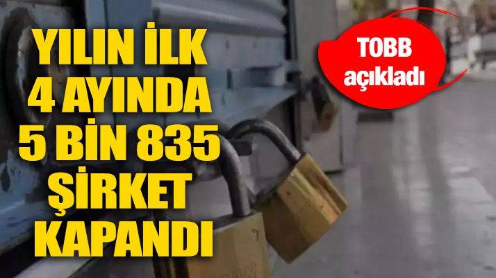 Buna göre, Nisan ayında 1458 şirket daha kapandı ve yılın ilk 4 ayında toplam 5 bin 835 şirket kapanmış oldu.