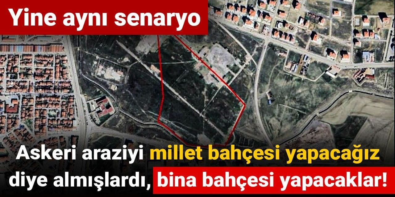 “Yeşil alan” olacağı söylenen bir askeri arazi daha yapılaşmaya açıldı. AKP’li Mustafa Tuna’nın Ankara Büyükşehir Belediye Başkanı olduğu dönemde, Polatlı İlçesi Zafer Mahallesi’nde bulunan askeri alana millet bahçesi yapılacağı açıklandı fakat daha sonra projeden vazgeçildiği ve TOKİ’nin arazide konut yapmaya hazırlandığı öğrenildi.