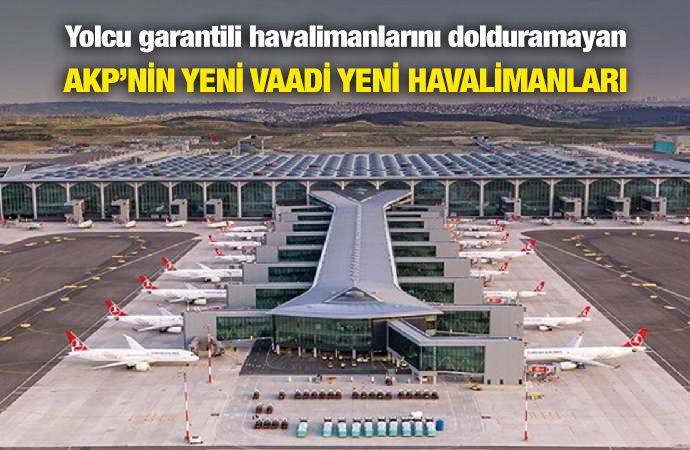 Yurttaşı kemer sıkmaya yönlendiren AKP iktidarı ekonomik krizin gölgesinde tasarruf tedbirlerini bu defa da havalimanları üzerinden askıya alıyor. Ulaştırma ve Altyapı Bakanı Abdulkadir Uraloğlu, ÇeşmeliErdemliSilifkeTaşucu Otoyol Projesi’nin ilk etabı olan 42 kilometrelik ÇeşmeliKızkalesi kesiminde incelemelerde bulundu. Uraloğlu burada yaptığı açıklamada, “Aktif havalimanı sayımızın 26’dan 57’ye yükselttik. 2053 hedeflerimiz kapsamında mevcutta 57 olan aktif havalimanı sayımızı da 61’e çıkaracağız” dedi.
