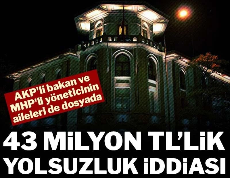 Güncel kurla: 43 milyon 457 bin TL. Dosyada AK Partili bir Bakanın ve MHP’li bir yöneticinin, aile bireylerinin de adı geçiyor.