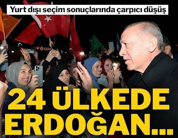 Yurt dışı oylarında Erdoğan, 1 milyondan fazla oyla yüzde 57'yi aşarak birinci çıktı ama bazı ülkelerde büyük hayal kırıklığına uğradı.