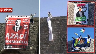 Hamas'a Hizbullah'a serbest İmamoğlu'na yasak! Diyarbakır Surları'na İmamoğlu pankartı asan CHP'liler gözaltına alındı!