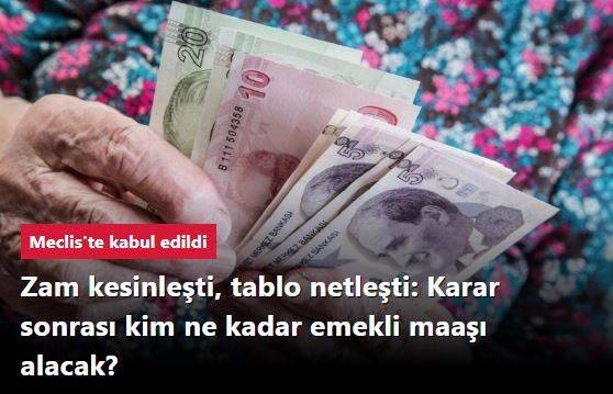 SSK ve Bağkur emeklilerine enflasyon ve refah payı ile birlikte 6 aylık yüzde 25 zam öngören madde TBMM Genel Kurulu'nda kabul edildi. TBMM'de dün görüşülen teklifle herhangi bir artış yapılmadı ve SGK ve BağKur emeklisinin zam oranı kesinleşti.