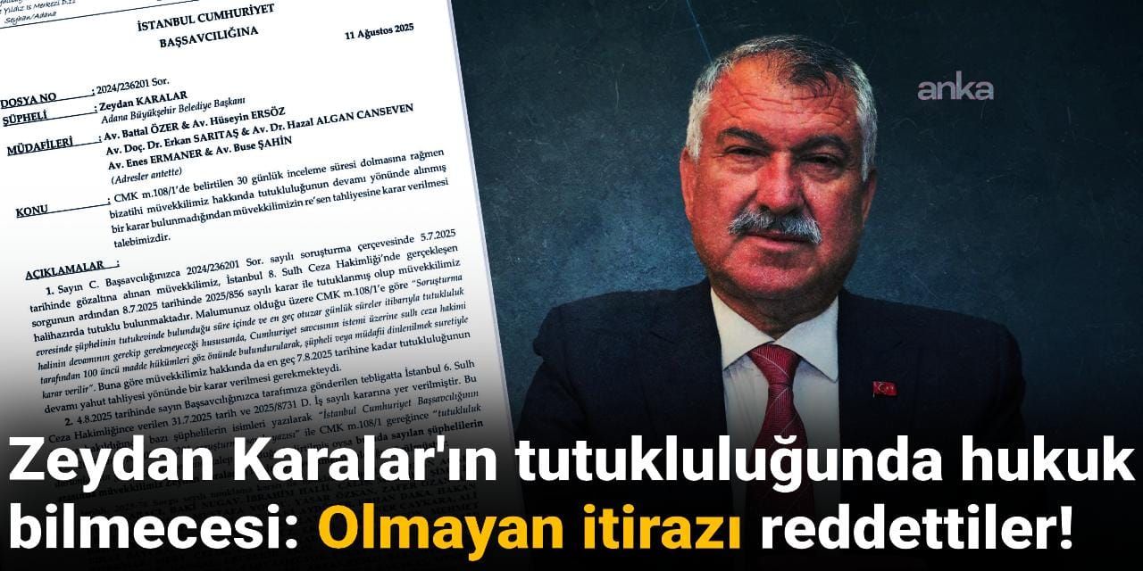 Ersöz, yaşanan süreci şöyle özetledi: 31 Temmuz’da Zeydan Karalar için tahliye talebinde bulunduklarını, ancak bu dilekçenin Sulh Ceza Hakimliği’ne gönderilmediğini belirtti. Aynı gün İstanbul 6. Sulh Ceza Hakimliği’nin, CMK gereği 30 günde bir yapılması gereken tutukluluk incelemesini gerçekleştirdiğini ve Karalar hakkında herhangi bir karar vermediğini ifade etti.