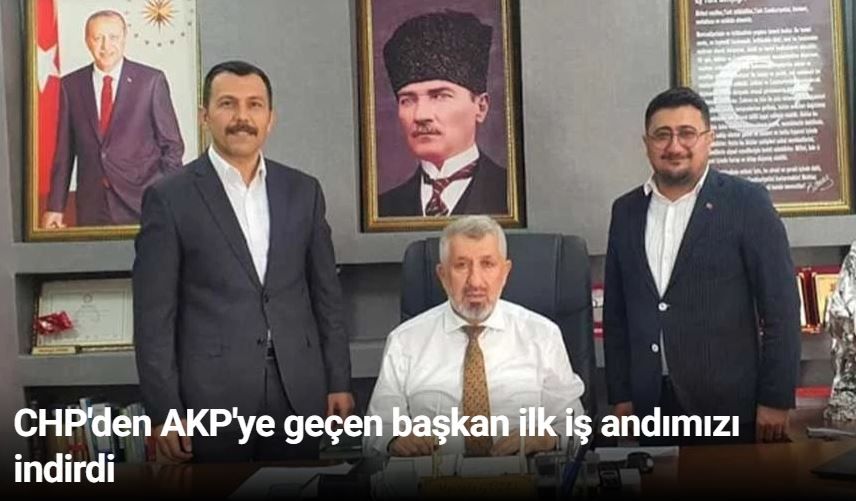 31 Mart yerel seçimlerinde CHP'den yüzde 50,05 oyla seçilen Gaziantep Karkamış Belediye Başkanı Mustafa Güzel, partisinden istifa ederek AKP’ye geçmişti. Güzel, AKP’ye geçmesinin ardından ilk işi makamındaki Andımızın yazılı olduğu tabloyu indirip Cumhurbaşkanı ve AKP Genel Başkanı Erdoğan’ın fotoğrafını asmak oldu.