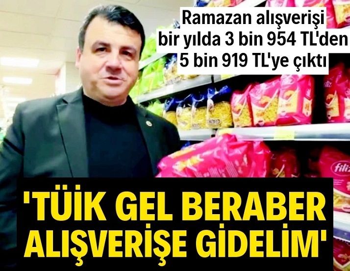 CHP’li Hasan Öztürk, geçen yılki ramazan alışverişini bu yıl aynı markette yaptı. Geçen yıl 3 bin 954 lira tutan alışveriş, bu yıl 5 bin 919 liraya mal oldu. Geçen yıl fahiş fiyat nedeniyle pastırma alamayan Öztürk bu yıl da eve pastırma götüremedi.